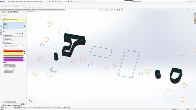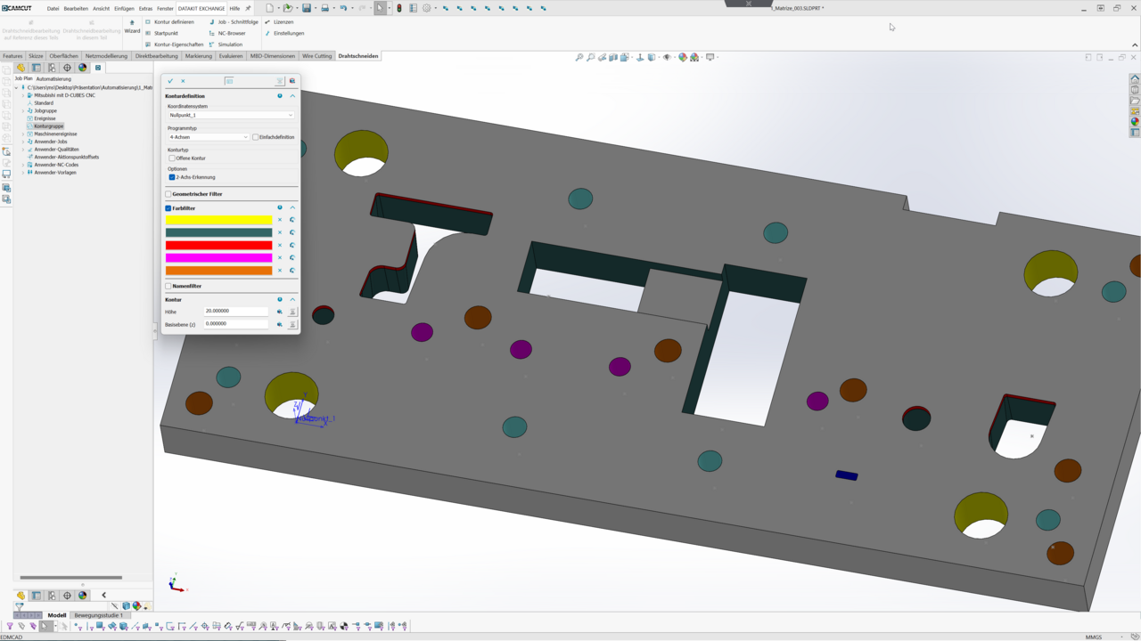 Die erstellten Konturen behalten als DCAMCUT Kontur ihre Farbe bei.