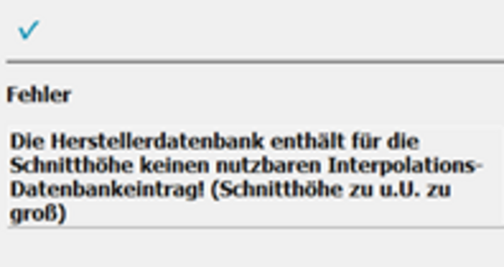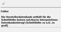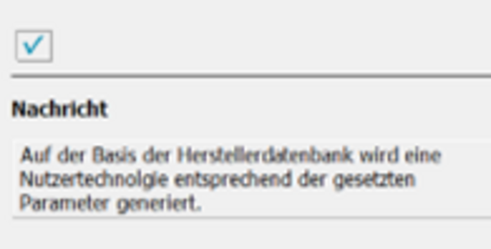Sollte auf der Basis der Eingabeparameter keine Technologie erzeugt werden können, wird nachfolgende Fehlermeldung generiert: