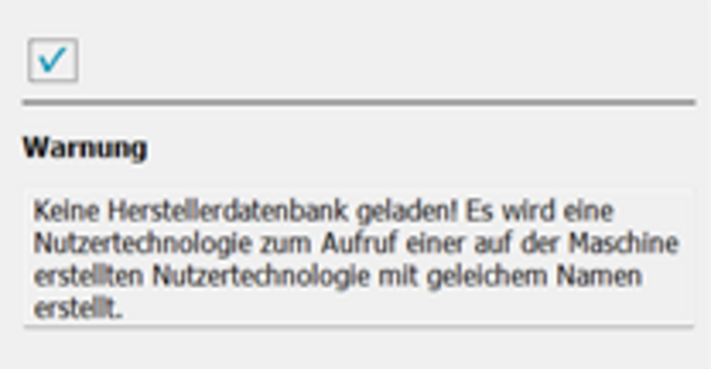 - Herstellertechnologie ist auf der Maschine erzeugt worden und über den Technologienamen ansprechbar