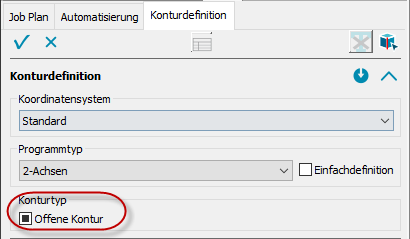 Neu ist, dass offene und geschlossene Konturen, über die Checkbox ‚Offene Kontur‘ gleichzeitig definiert werden können.