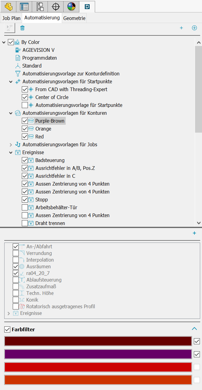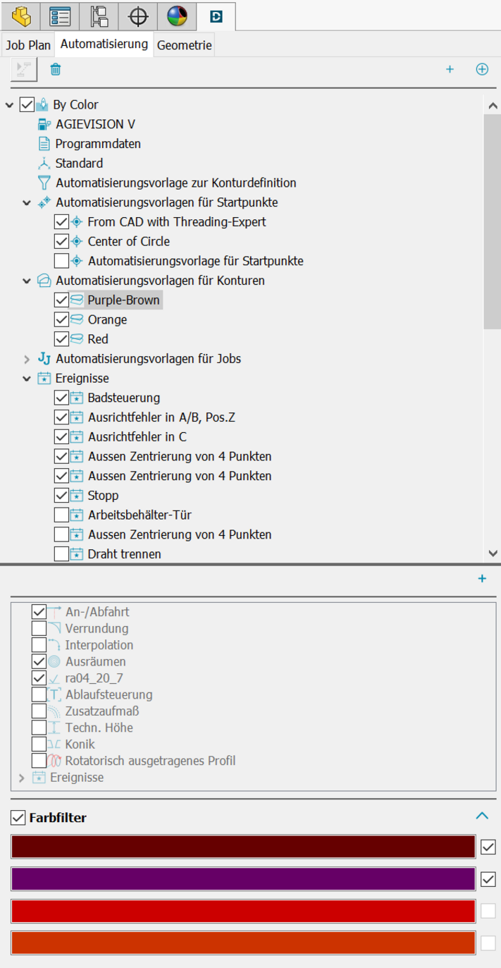 Definieren Sie Ihre wiederkehrenden Erodieraufgaben komplett in Automatisierungsvorlagen, indem Sie geometrische Eigenschaften oder Farben und Namen Ihres CAD-Modells mit technologischen Eigenschaften von DCAMCUT zusammenbringen.