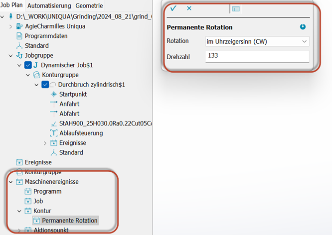 Hinzukommendes Maschinenereignis auf Konturebene: