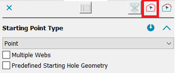 Starting point - defined point: The contour selection button has now been activated. This can be used to select several existing defined starting points in order to change parameters (e.g. the diameter or wire position ...)