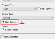 1. check box = defines only open contours,