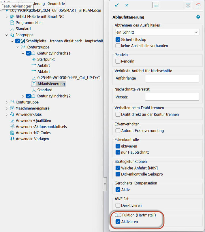 Open a file either with or without editing. If necessary, activate wire cutting in this part.