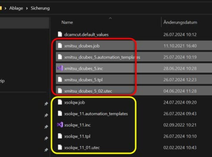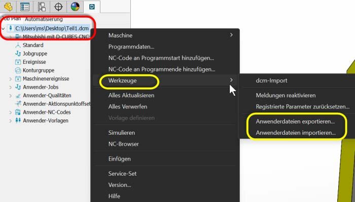 When reopening, the corresponding machine is opened and all user files such as templates, qualities and user NC codes as well as all registered values in dialogs have been transferred.